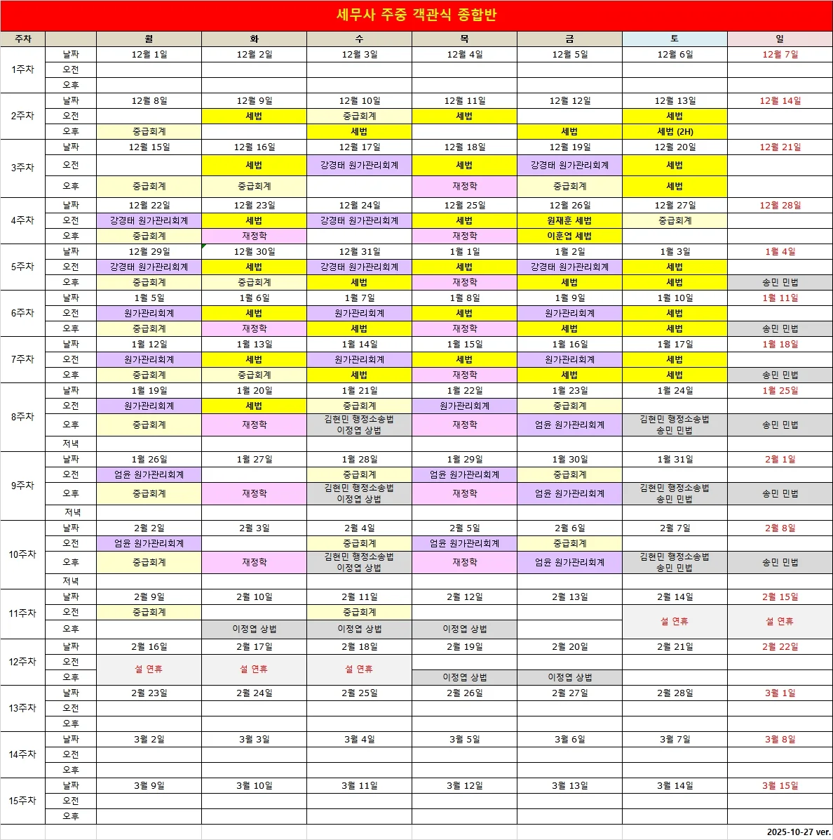 객관식 종합반: 종강일(종강일 포함)+7일까지