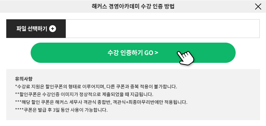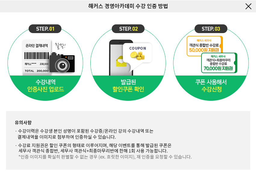 2) 해당 지원권은 세무사 학원 실전모의고사반(종합반)에만 사용 가능하며, 다른 쿠폰과 중복 적용이 불가합니다.